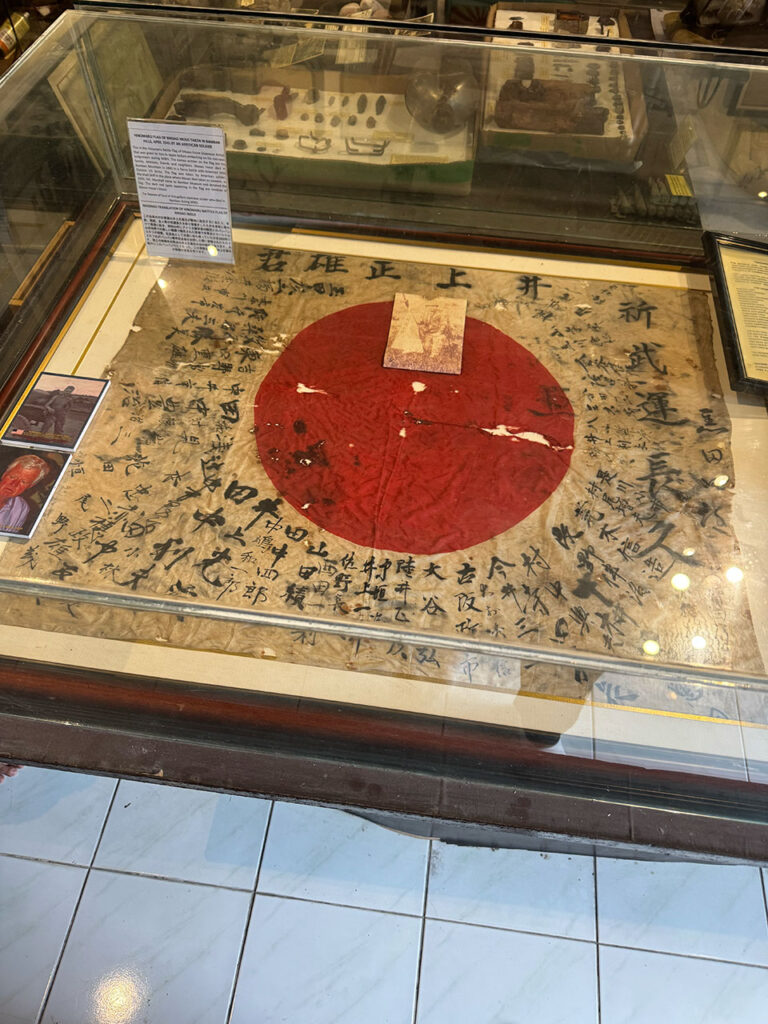 フィリピン人の学生も来てました。アメリカ人も来るそうです。日本兵を殺したアメリカ人は、日本兵が持っていた寄せ書きされた国旗をずっと持っていて、それもここに展示されていました。「俺が殺した日本兵が持っていた国旗」だと言って寄付したそうです。